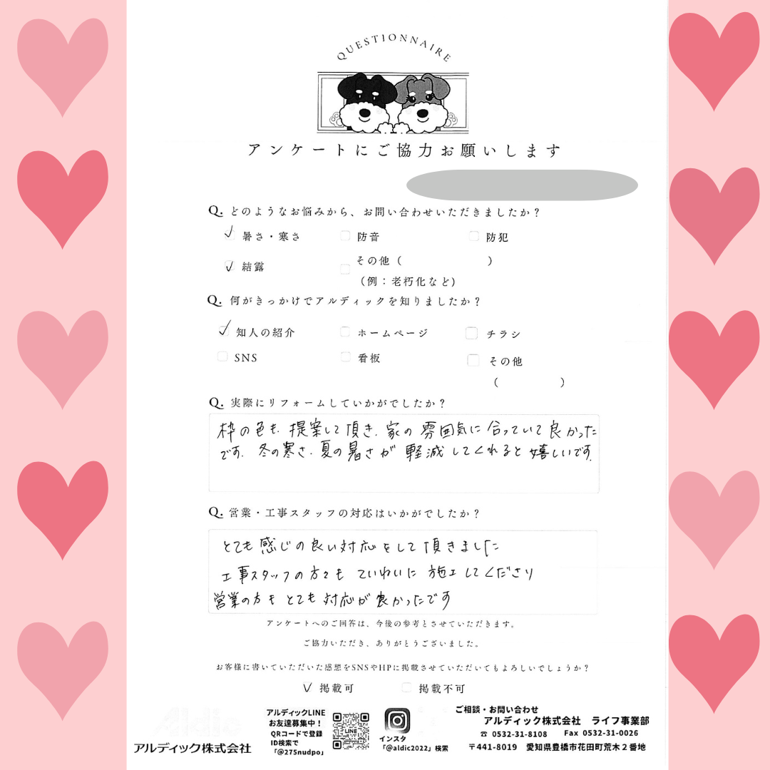 今年の冬は結露の軽減や断熱効果を感じていただき嬉しいです。